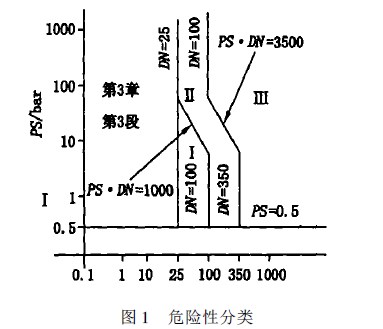 設(shè)備分類(lèi)依據(jù)①壓力設(shè)備形式(如容器、管道、安全附件和壓力附件)、②流體性質(zhì)(根據(jù)危險(xiǎn)程度分為2組。第1組包括易爆的、極易燃的、高度易燃的、易燃的———最高使用溫度大于閃點(diǎn)、劇毒的、有毒的和氧化性的流體。所有第1組未涉及的流體都?xì)w為第2組。如果設(shè)備同時(shí)存在多個(gè)腔體或容納幾種不同流體,設(shè)備類(lèi)型按照最高危險(xiǎn)等級(jí)的流體歸類(lèi))、③最大工作壓力Ps和④容積V或公稱(chēng)直徑DN確定。根據(jù)以上幾個(gè)參數(shù),PED附錄Ⅱ的圖表, 閥門(mén)一般查找確定設(shè)備的危險(xiǎn)性類(lèi)別。例如,如流體為第1,DN大于25mm的閥門(mén)的分類(lèi)見(jiàn)圖1(對(duì)應(yīng)PED附錄Ⅱ)