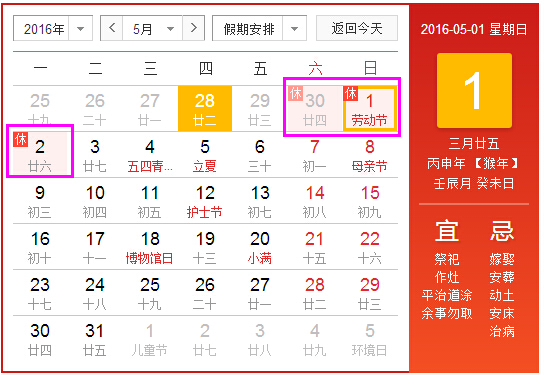2016年五一勞動節(jié)放假時間:2016430——5月2周六周日、周一共三天。